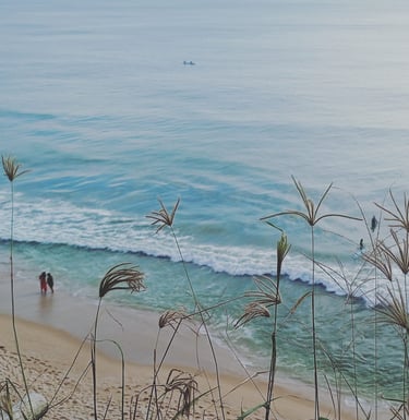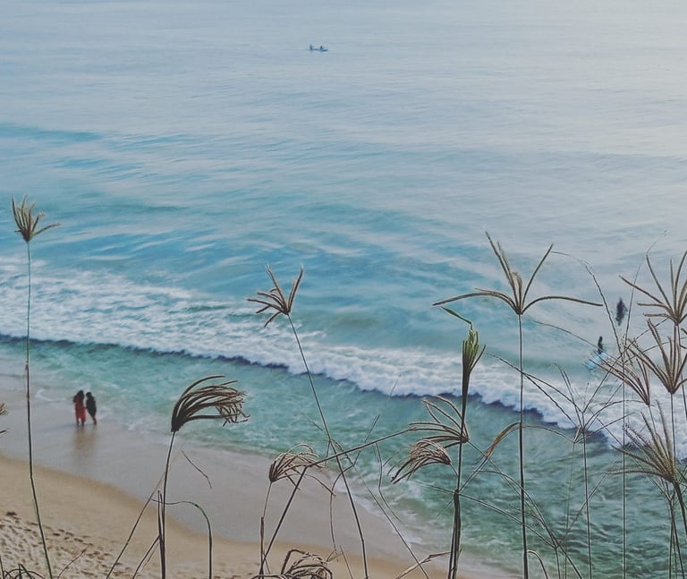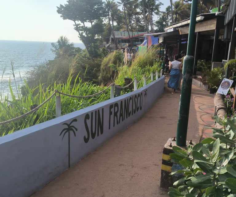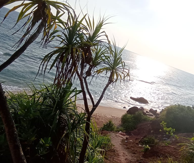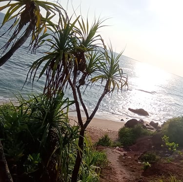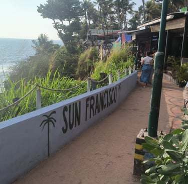 Exit left from our small alley that leads you to the cliff and stroll along the Cliff towards the Helipad. First, you'll encounter two staircases that take you down to the main beach, which connects to the spiritual and sacred section of Papanasam beach. Behind the temple, the lengthy expanse of stunning Cliff & beach known as Southcliff begins. After that, you'll find some of the most beautiful beaches, including Aaliyirakkam Beach. Turn right from our alley, and in 5 to 10 minutes of walking along the Cliff, you'll arrive at the so-called Black Beach—this place has a unique vibe during sunset. You can continue walking to reach Odayam Beach, then to Dave and Kappil. All are within walking distance.