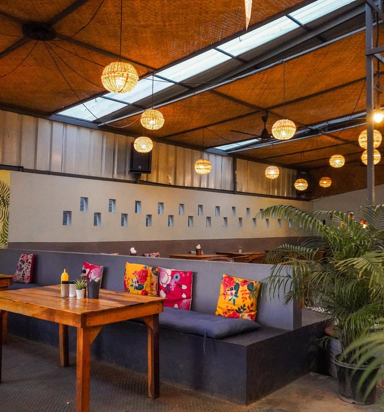 Walk down the alley from the Cliff and suddenly the world shifts. The noise fades, the air softens while you are stepping into a quiet green oasis tucked just behind the rhythm of varkala's Cliff.