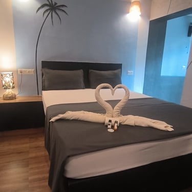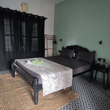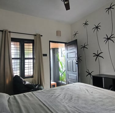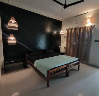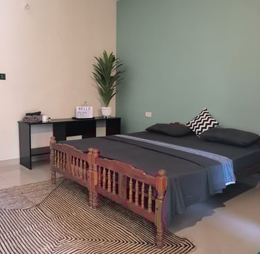 Enjoy comfort and convenience in our Triple AC Cottage room, featuring one cozy single bed and a huge King sized Bed. The unit is on ground floor, perfect for friends, families and couples who prefer to have little bit more space. It includes a private furnished seating area, and all essential amenities for a relaxing stay.
