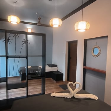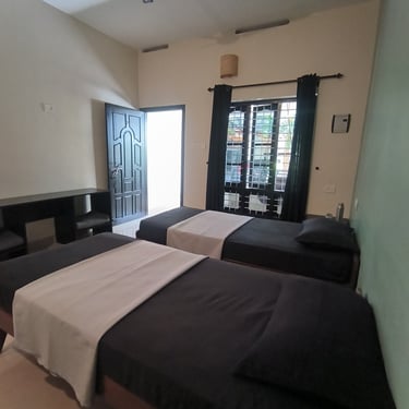 Enjoy comfort and convenience in our modernized Deluxe AC rooms, featuring two cozy single beds on groundfloor, perfect for friends and King beds on the upper floor, perfect for couples. It includes a private furnished seating area, and all essential amenities for a relaxing stay.