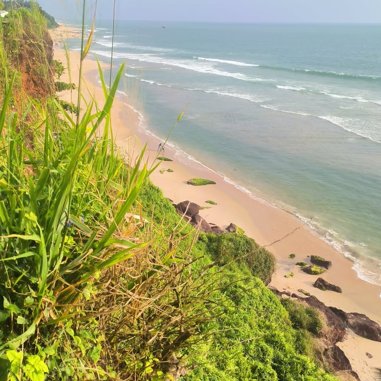 Varkala beach is the only place in south Kerala where cliffs are found adjacent to the Arabian Sea. The closest beaches to Mad about Coco are called (from south to north):